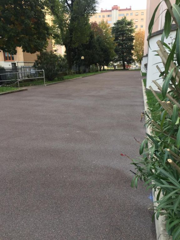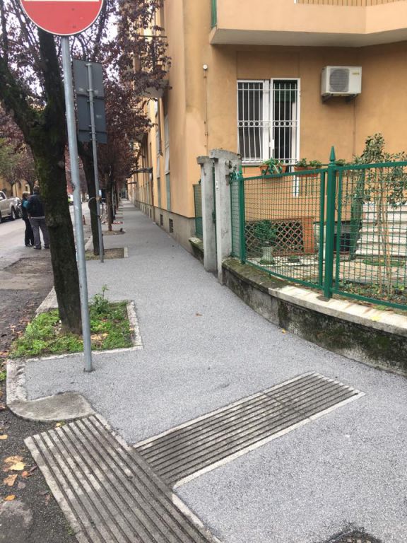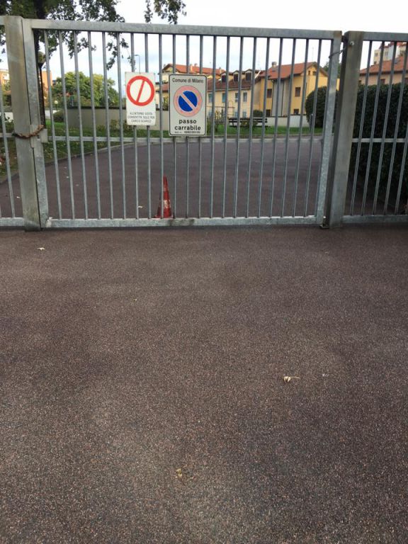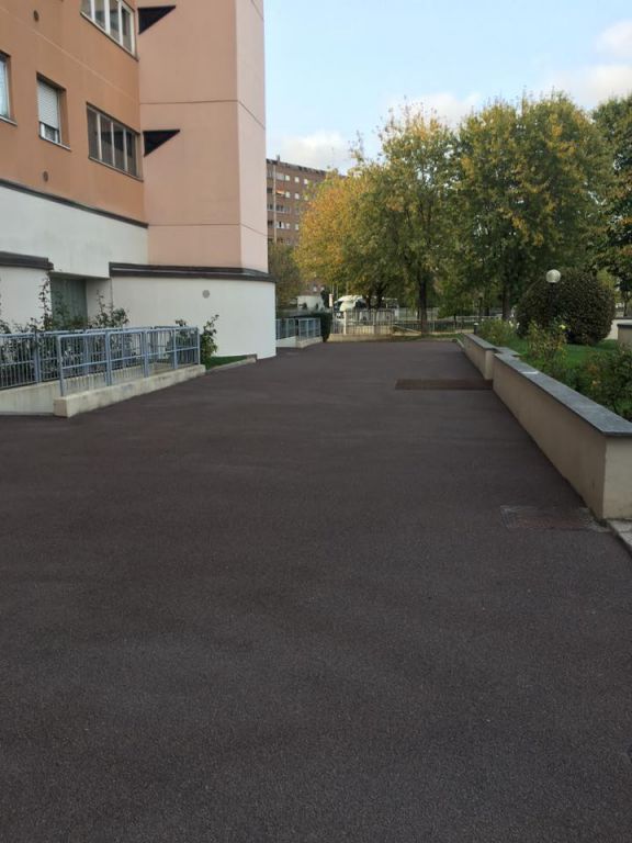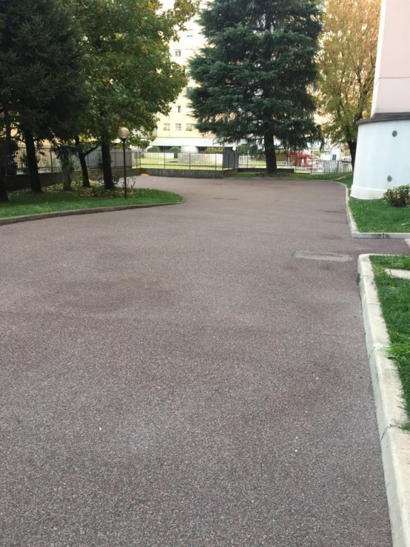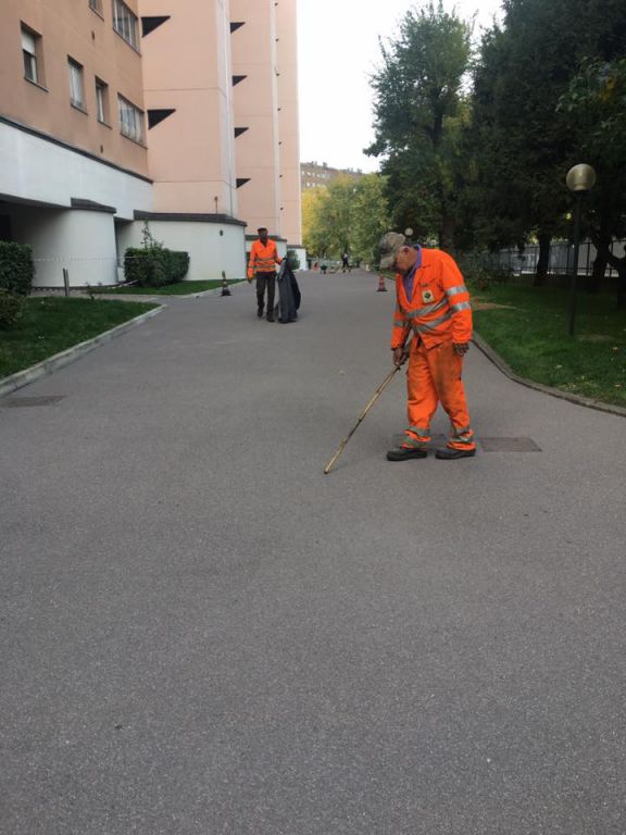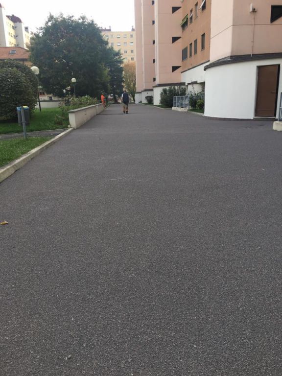New Asphalt crew laying a gussasphalt surfacing (Expo type, with Selenizza SLN), in a square in Milan